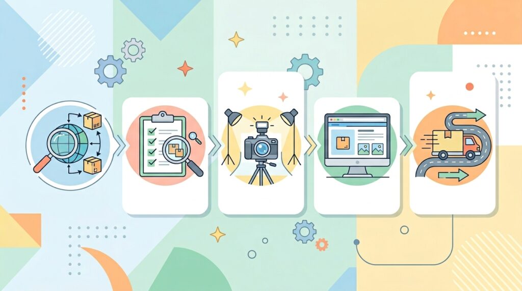 カメラ転売の作業は、大きく分けると以下のような工程があります。