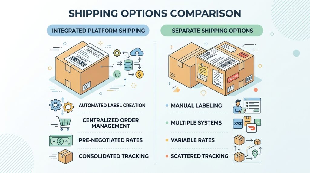 プラットフォーム独自の配送方法を使うのが一番スマートだと思います。